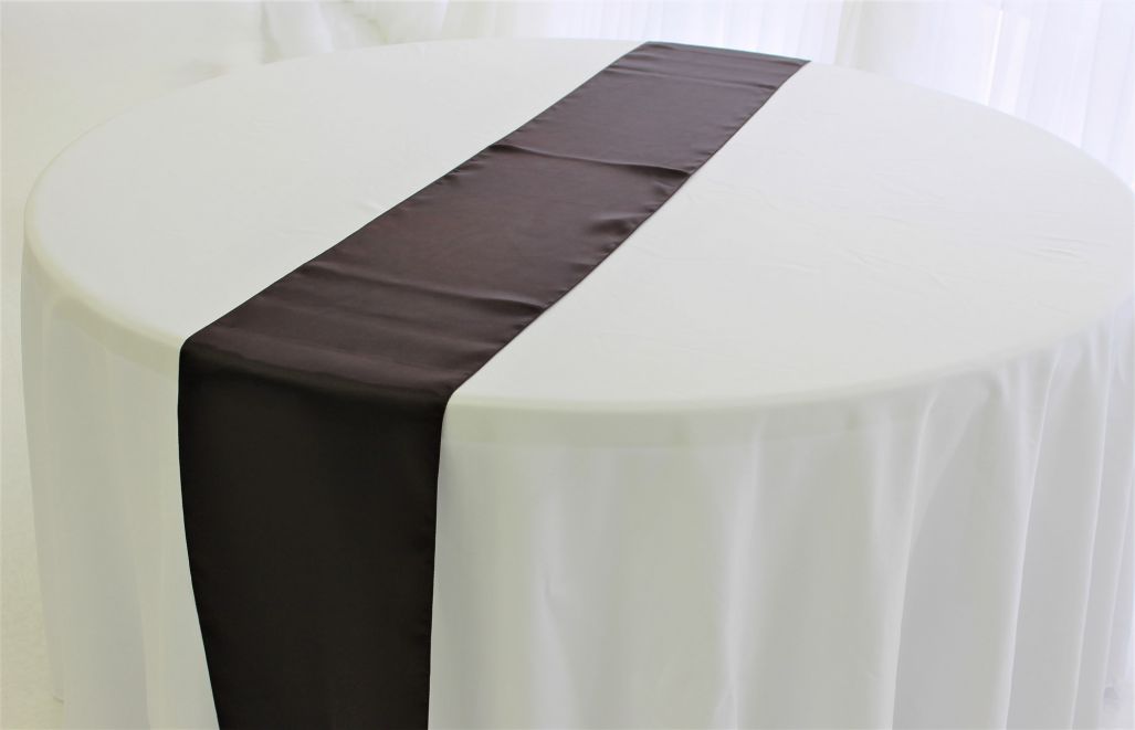 Pair our chocolate napkin and chair sash with this satin runner to complete your look!