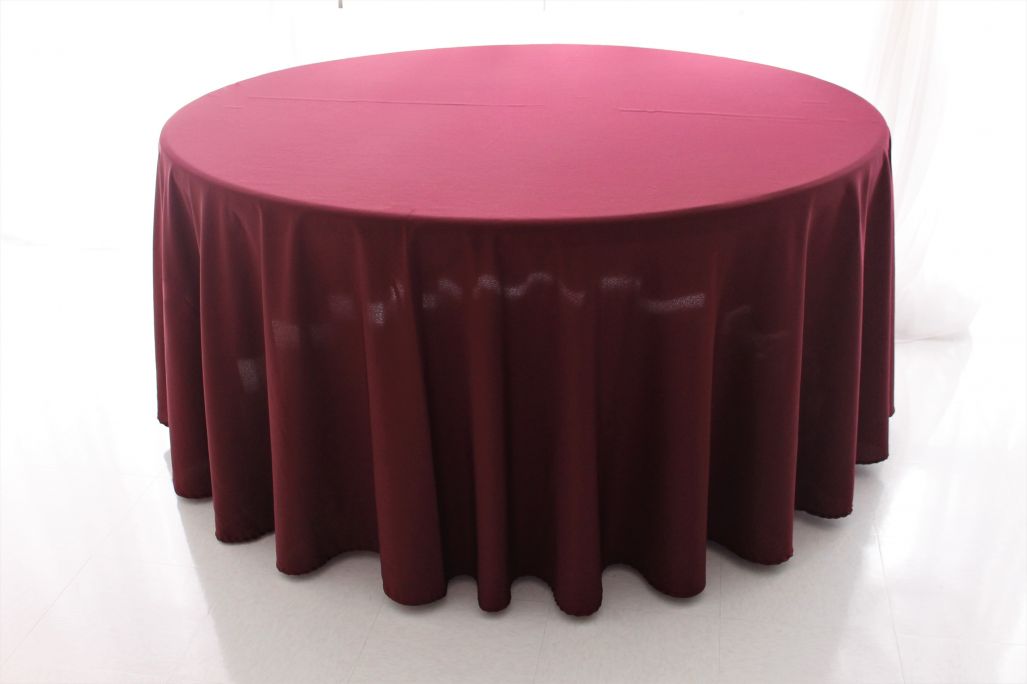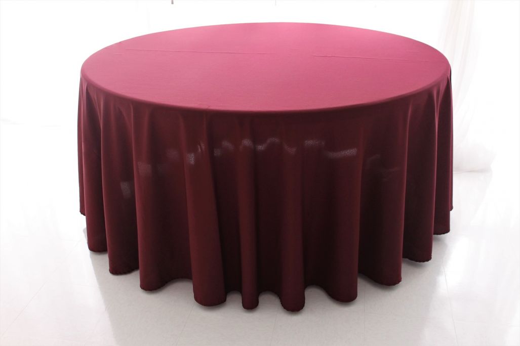 Cover your entire table - all the way to the floor - in this rich burgundy round tablecloth. Fits 60" round (to the floor) and 72" round tables.