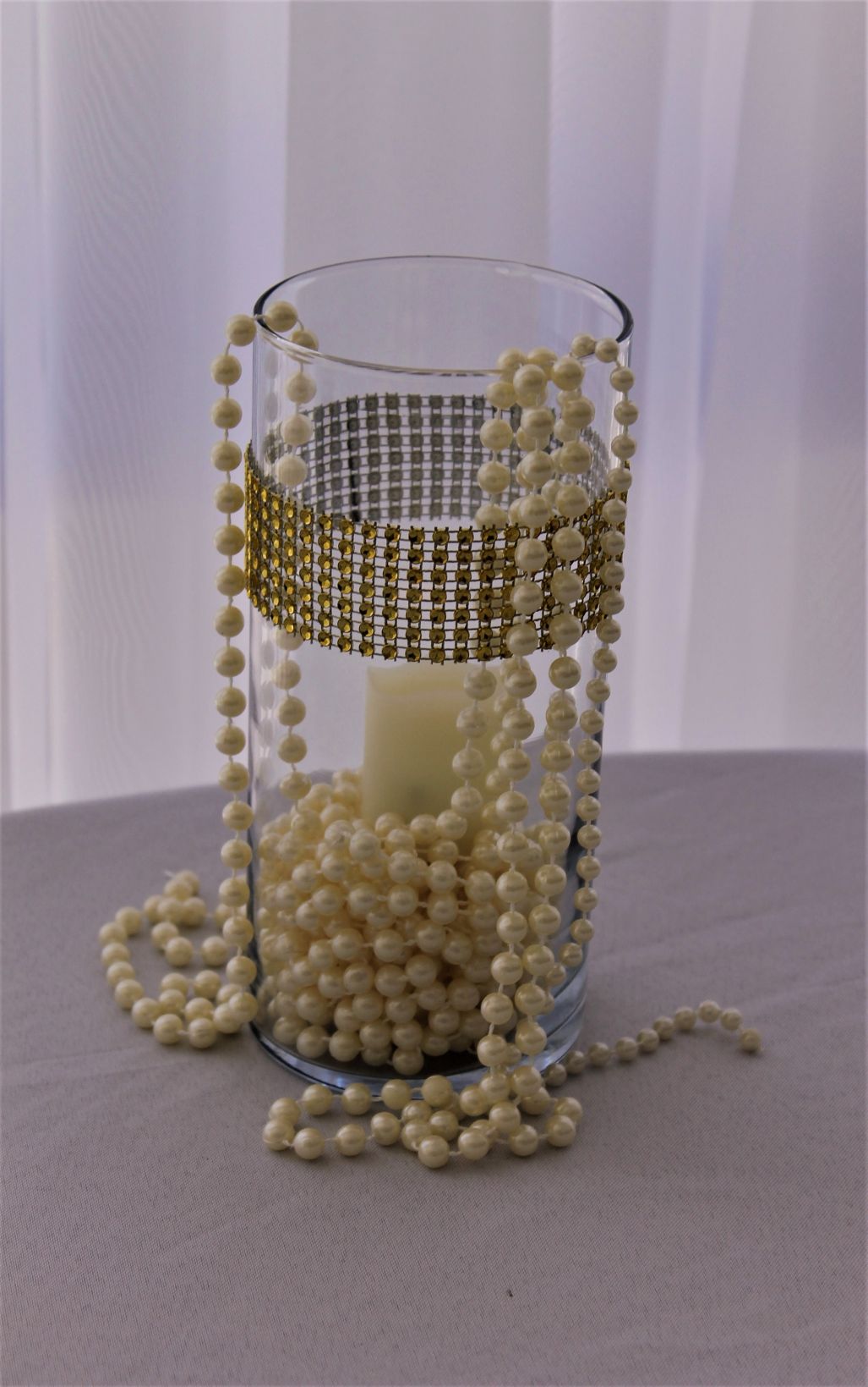An 8-inch tall cylinder can be used for flowers, floating candles centerpieces throughout your event.