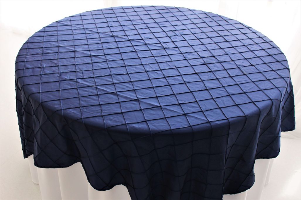 Our navy blue pintuck overlay looks great draped over your favorite color tablecloth or use alone.