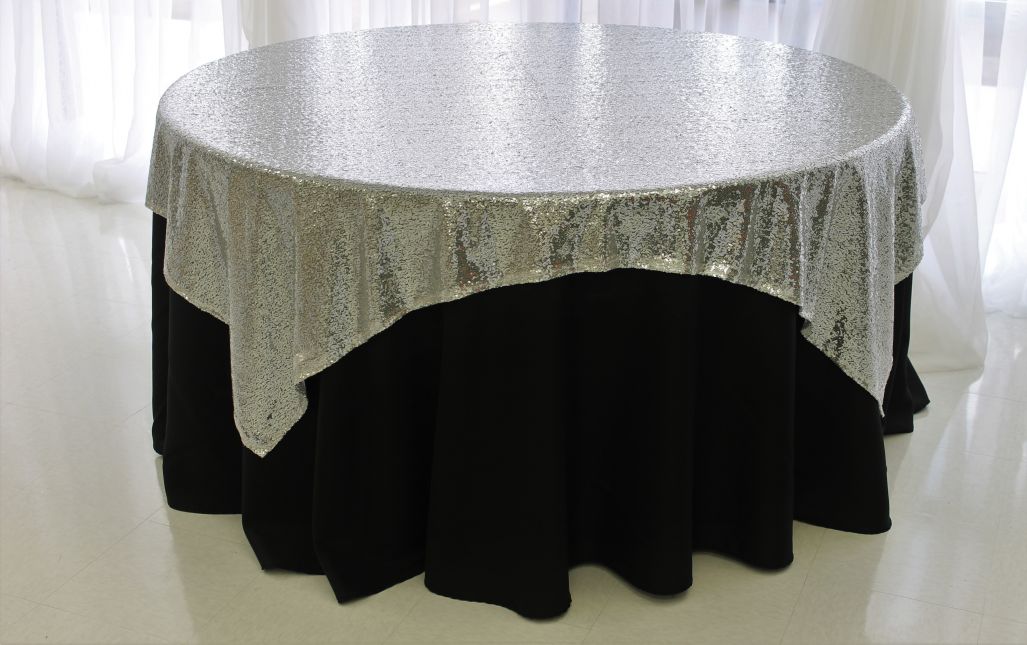 Made entirely of silver sequins this square tablecloth will WOW your guests!